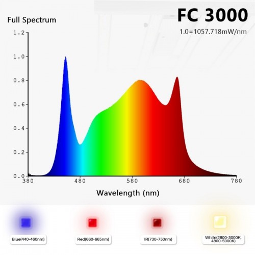 Az állítható Mars Hydro FC3000 LED panel 180 ° -ig hajlékony csatlakozással rendelkezik. A diódákat bármilyen környezetnek megfelelően állíthatja be. A fehér LED-ek szimulálják a napfényt, és ellátják növényeit a szükséges tápanyagokkal. A LED panel biztosítékkal van rögzítve, amely fenntartja a mozgás beállításait. A panelt alumínium felület hűti, ami csökkenti az összfogyasztást és biztosítja a csendes működést.